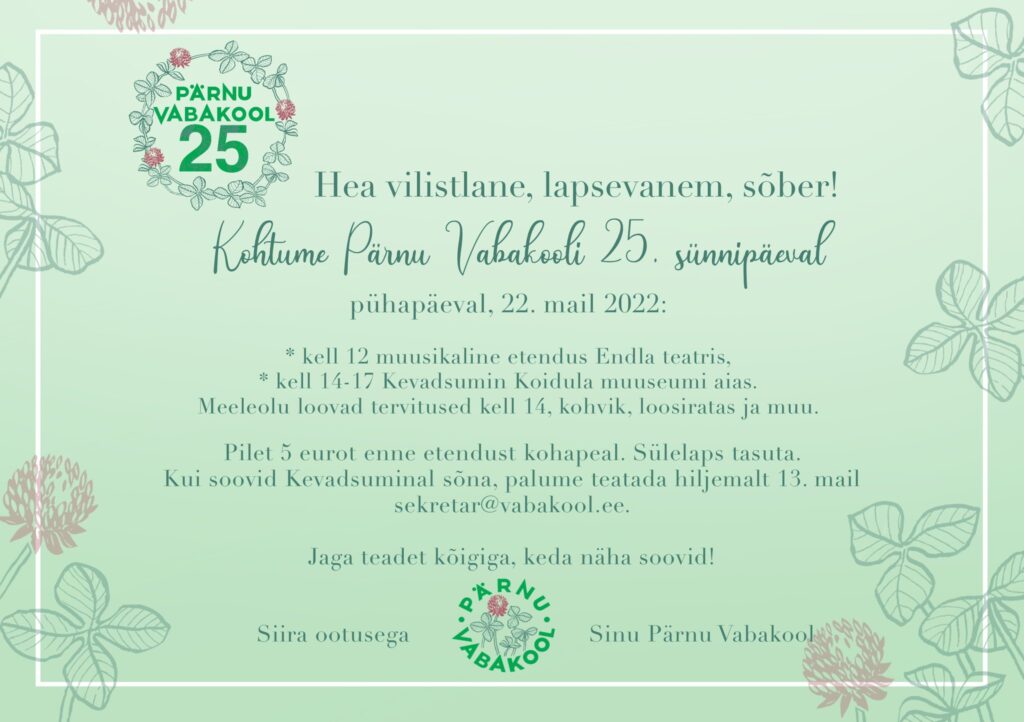 Pärnu Vabakool 25 kutsub sünnipäevale